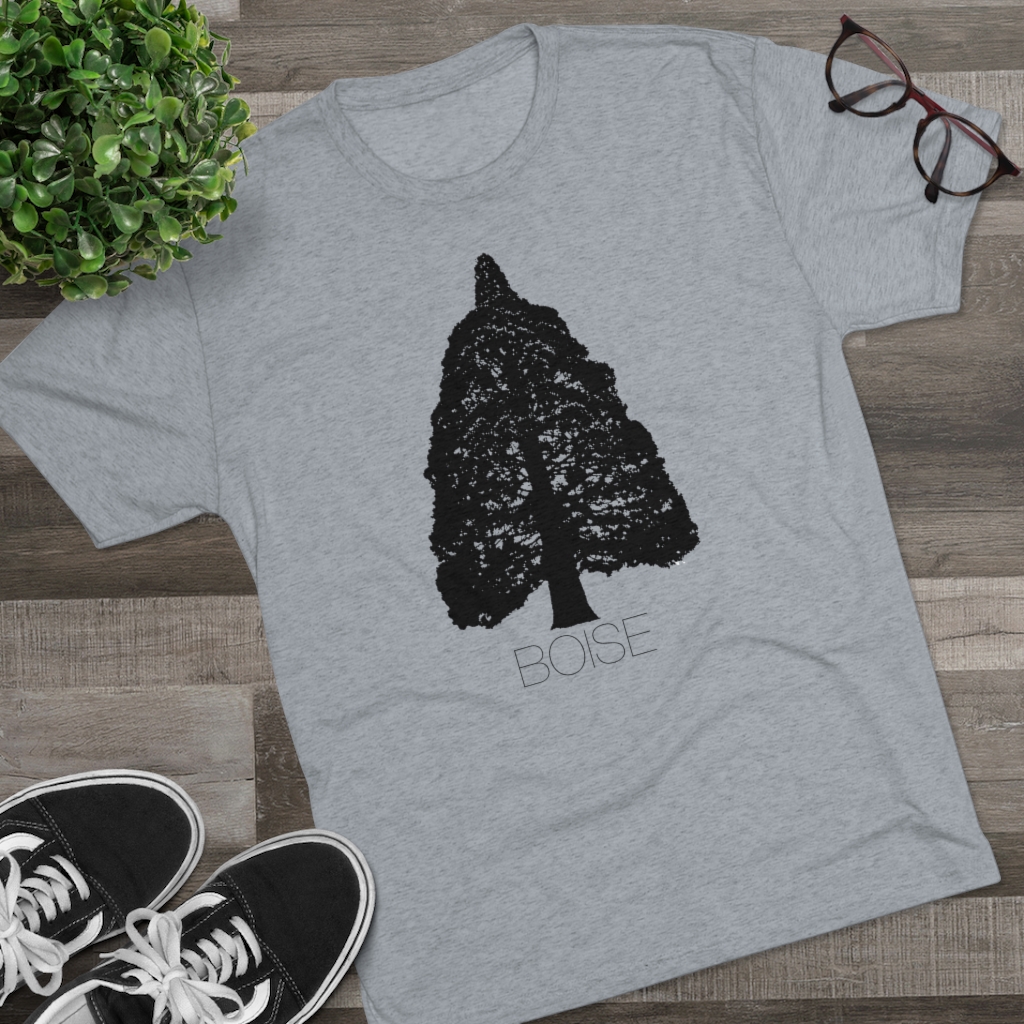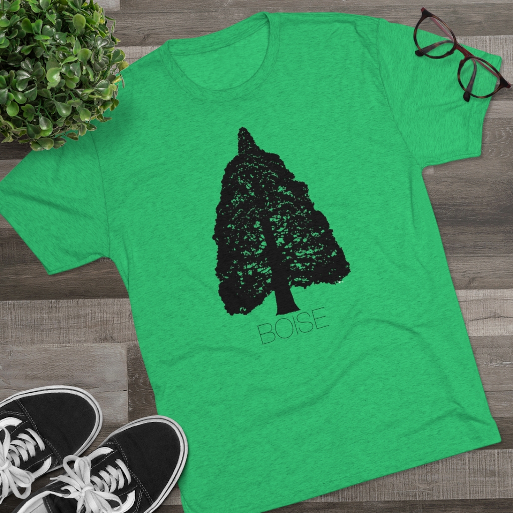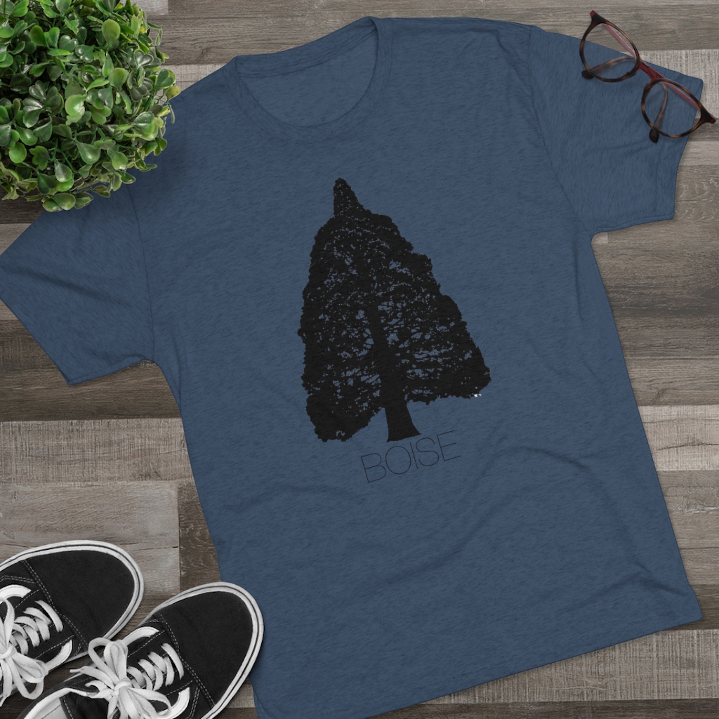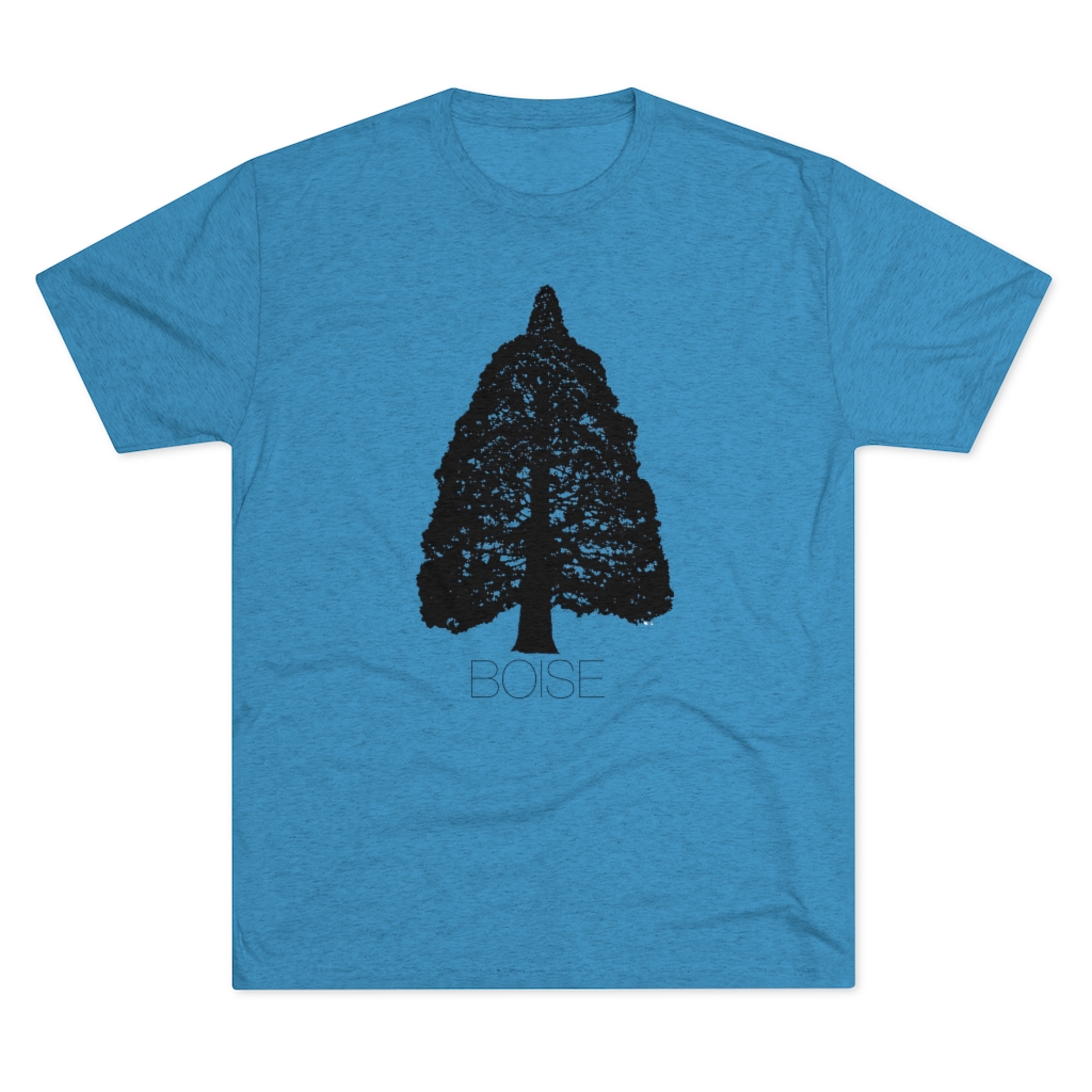 The Boise Idaho Sequoia Tree design is printed on a crazy soft, comfortable, stretchy men’s/unisex, triblend tee that will quickly become your favorite Idaho shirt. This tshirt runs true to size but has more of a modern, “fashion” fit, so we recommend going up a size if you prefer your shirts a little baggier. For women, we recommend ordering a size smaller than you would in a women’s fit tee.