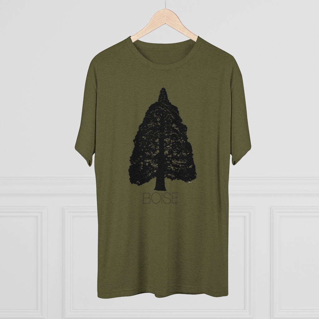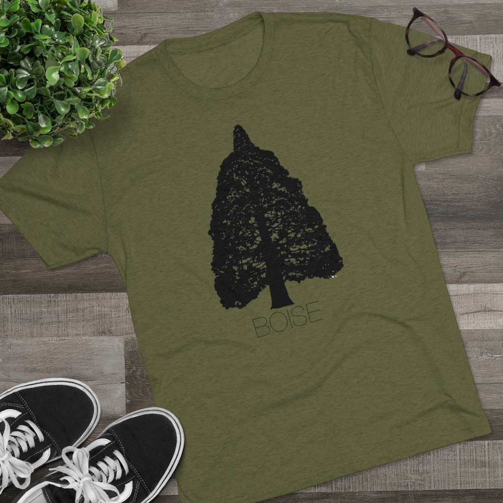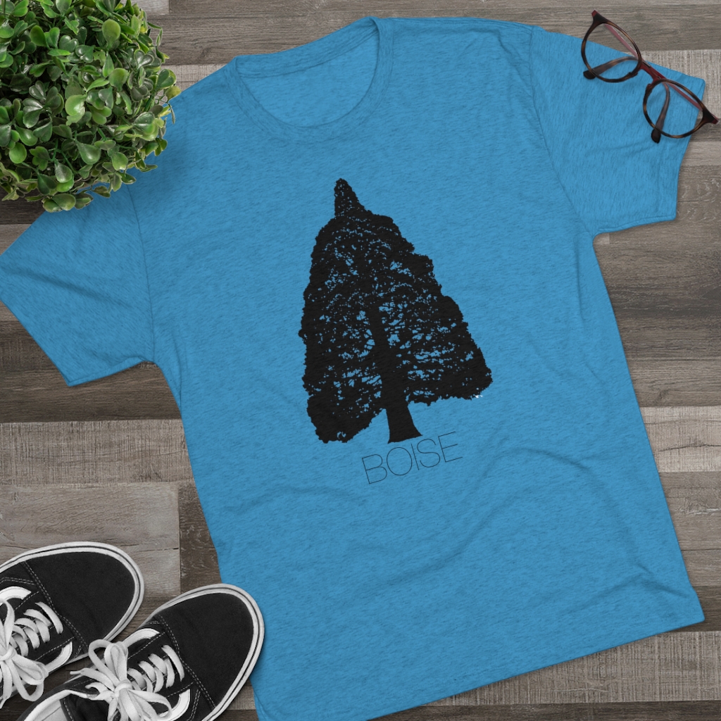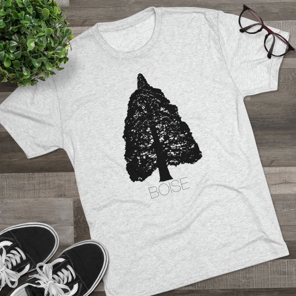 The Boise Idaho Sequoia Tree design is printed on a crazy soft, comfortable, stretchy men’s/unisex, triblend tee that will quickly become your favorite Idaho shirt. This tshirt runs true to size but has more of a modern, “fashion” fit, so we recommend going up a size if you prefer your shirts a little baggier. For women, we recommend ordering a size smaller than you would in a women’s fit tee.
