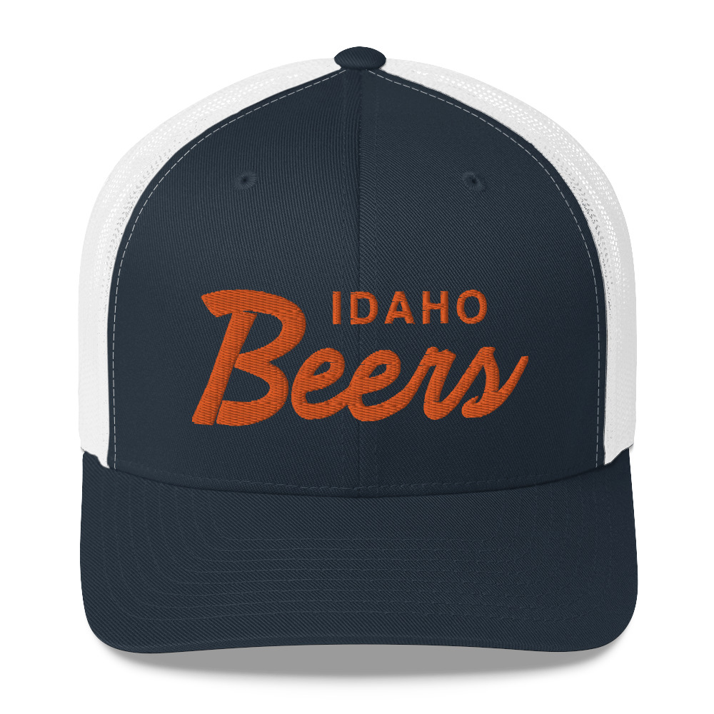 The Idaho Beers design embroidered on a six-panel trucker cap with a mesh back.