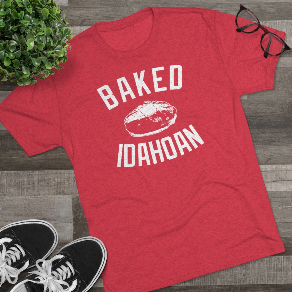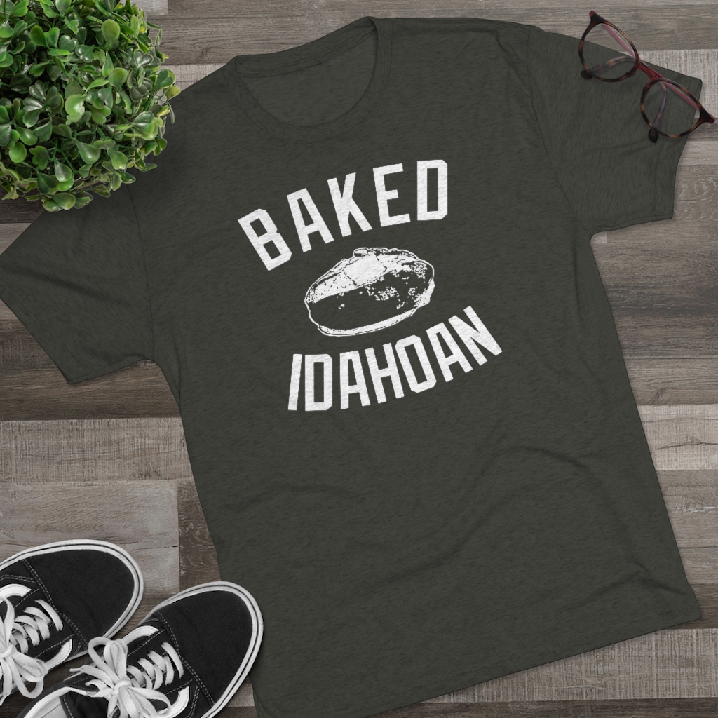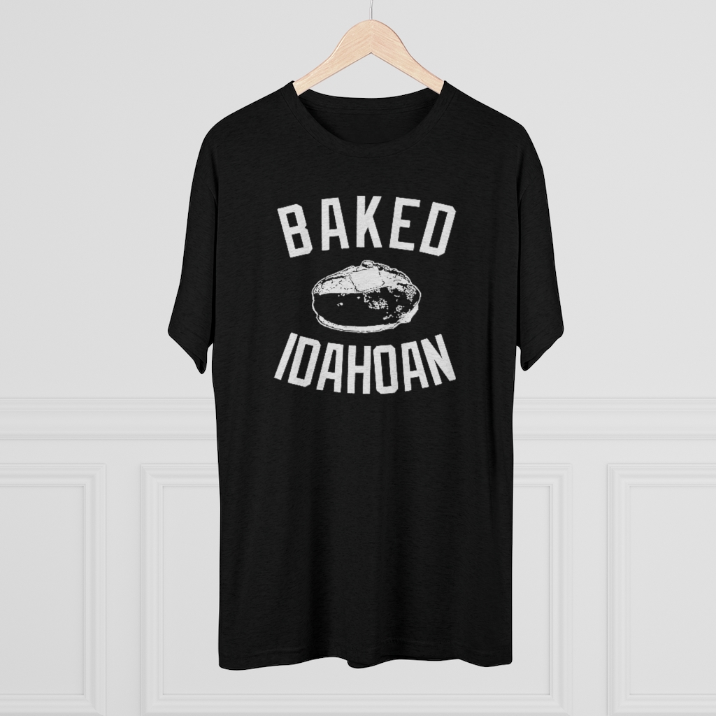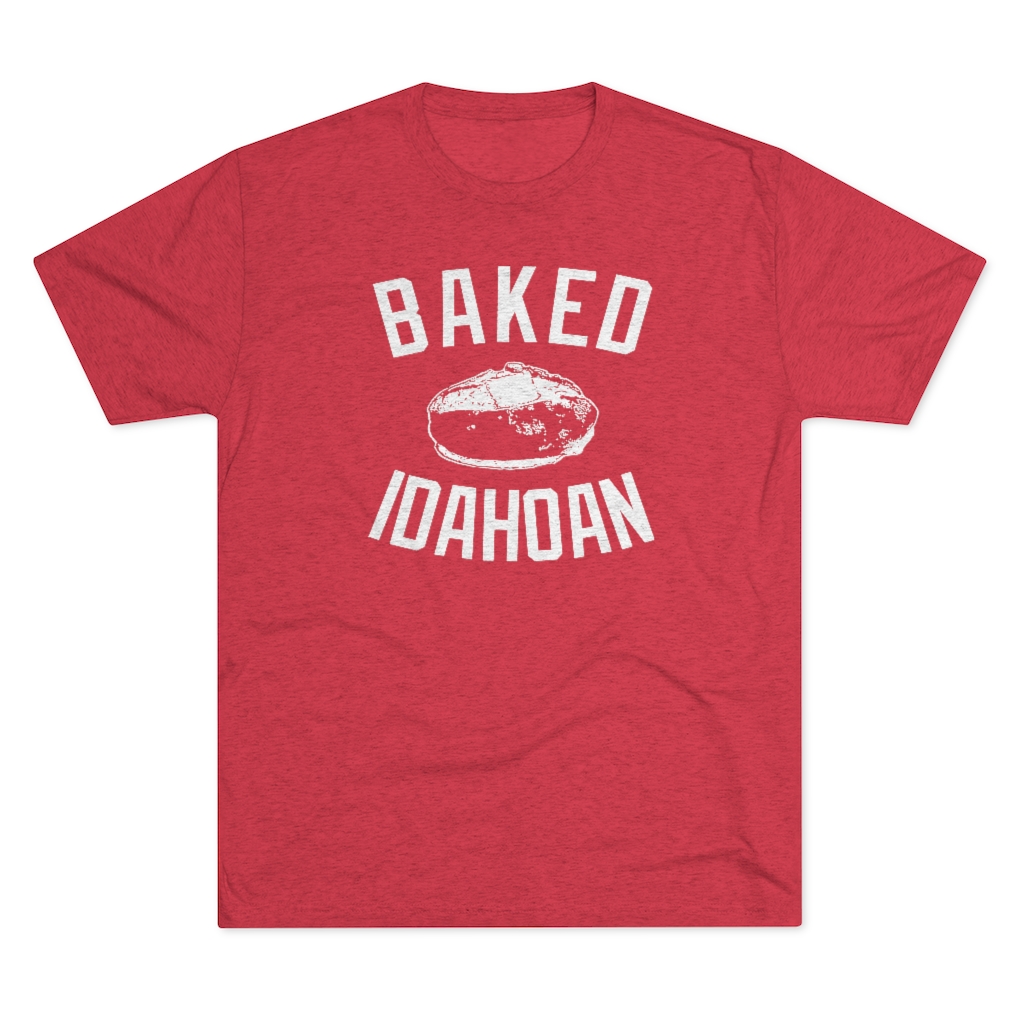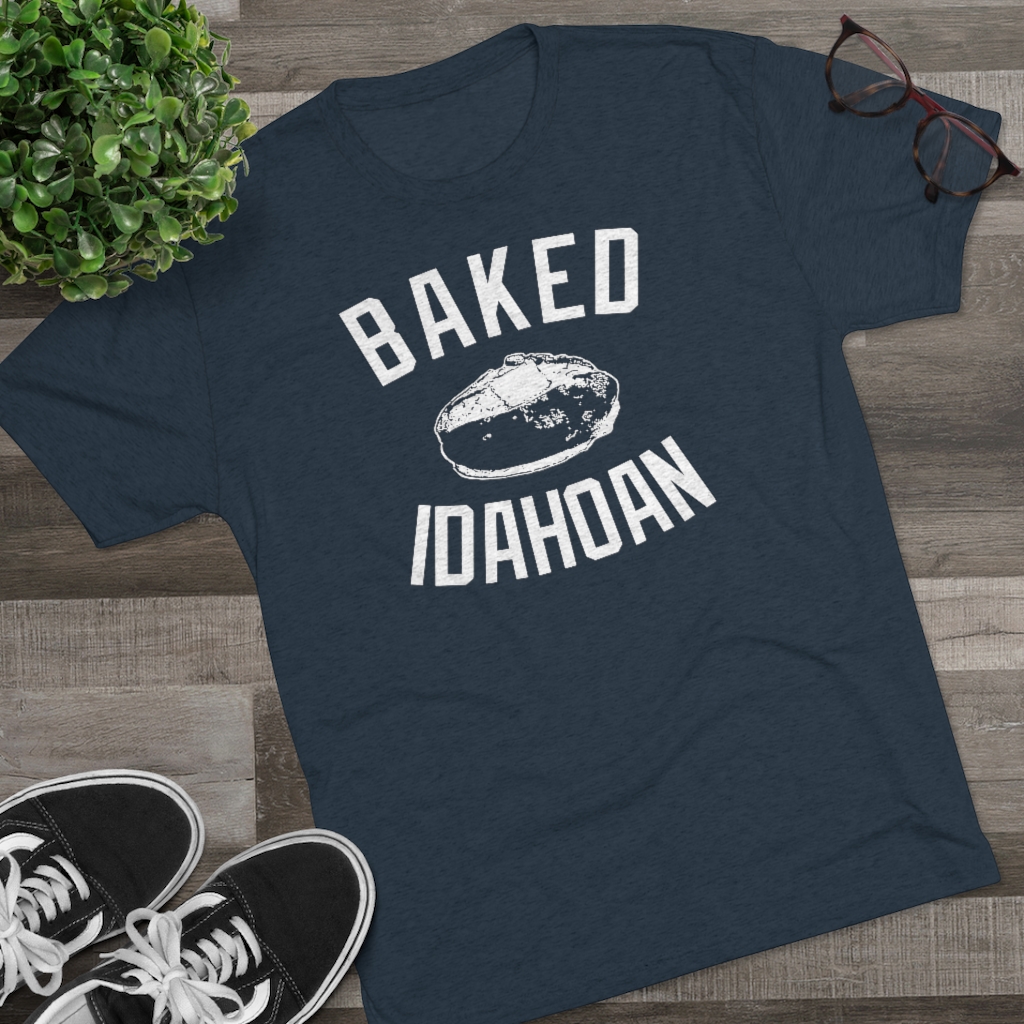 The Baked Idahoan design is printed on a crazy soft, comfortable, stretchy men’s/unisex, triblend tee that will quickly become your favorite Idaho shirt. This tshirt runs true to size but has more of a modern, “fashion” fit, so we recommend going up a size if you prefer your shirts a little baggier. For women, we recommend ordering a size smaller than you would in a women’s fit tee.