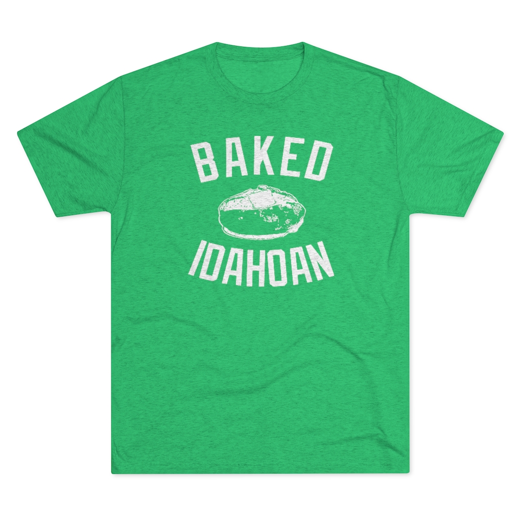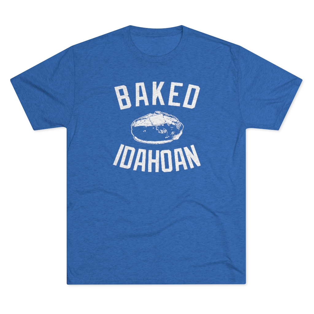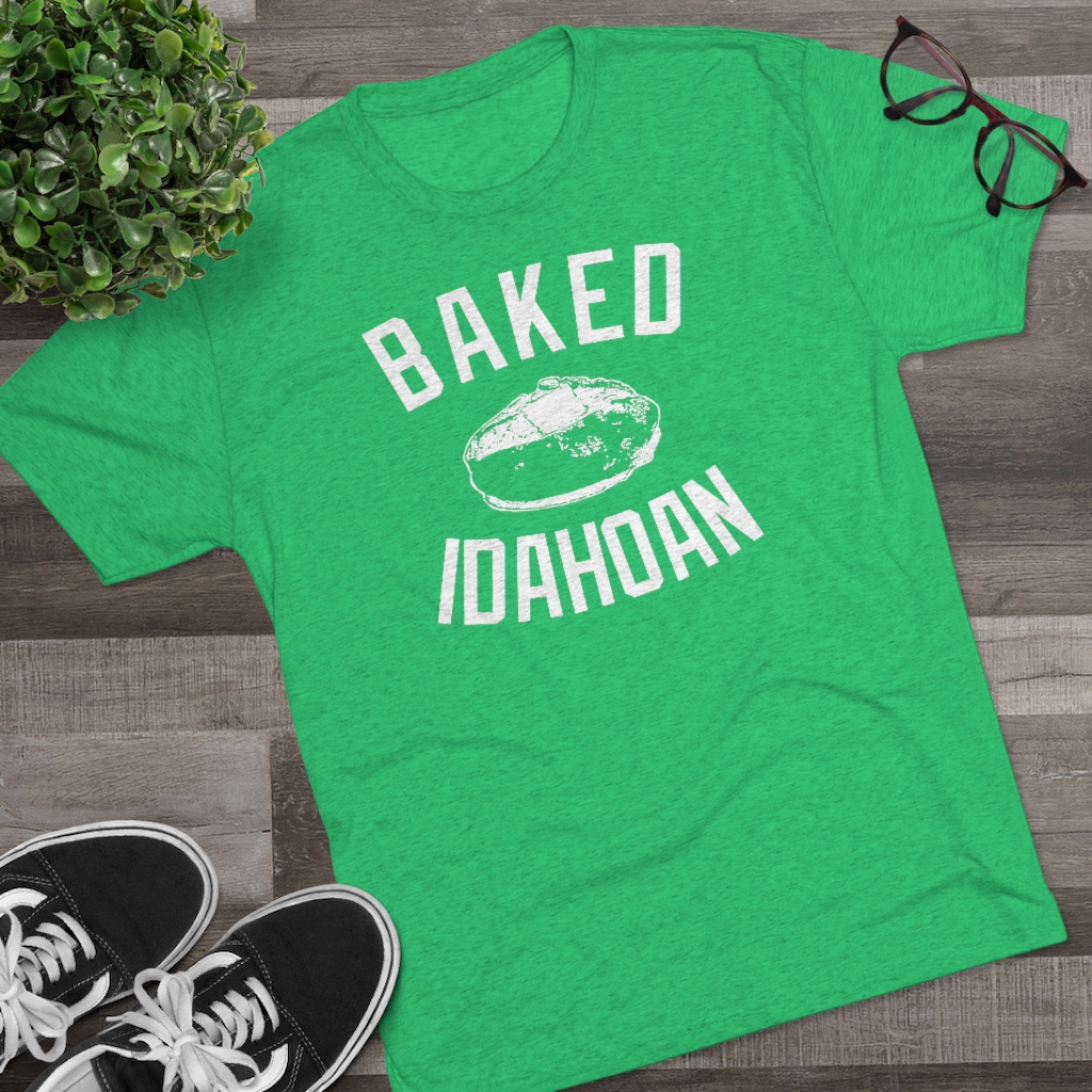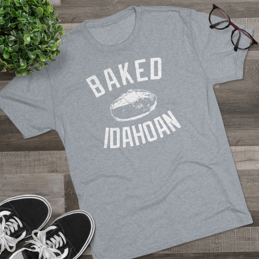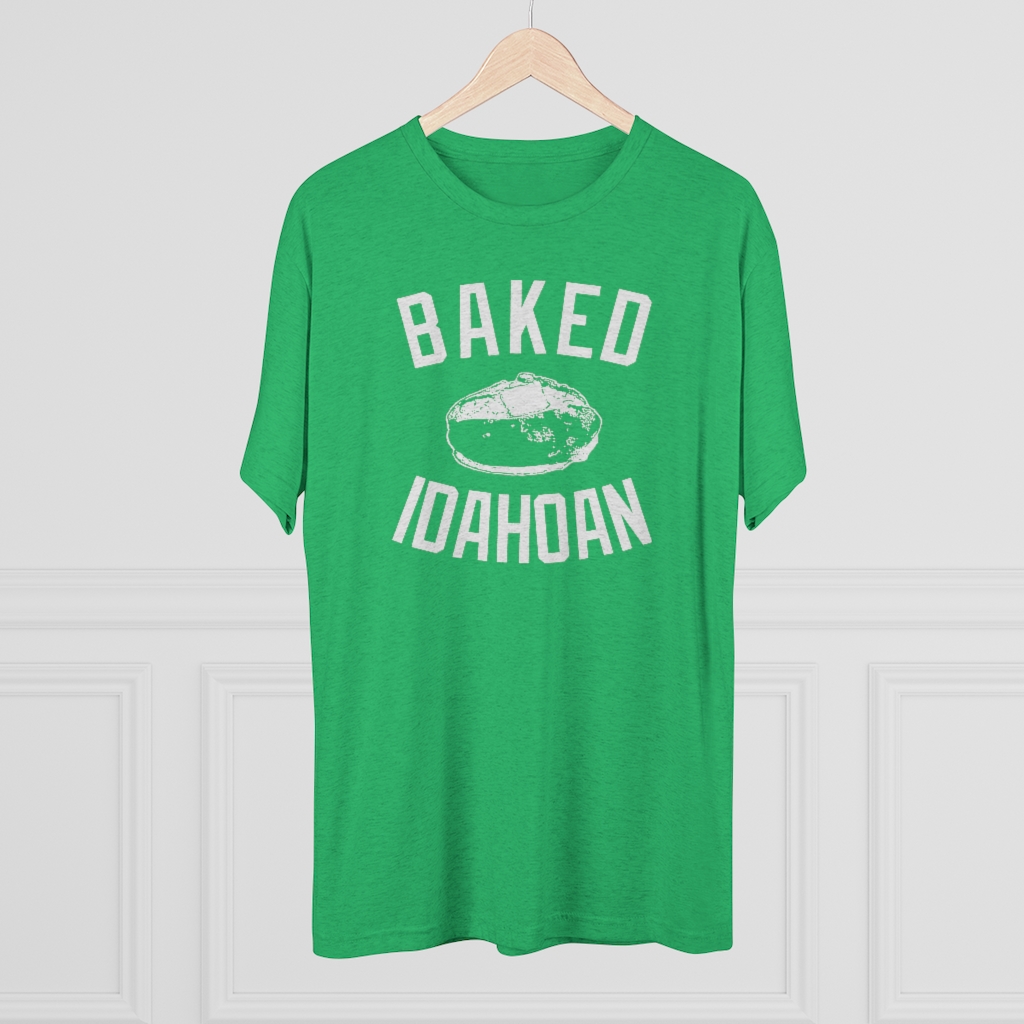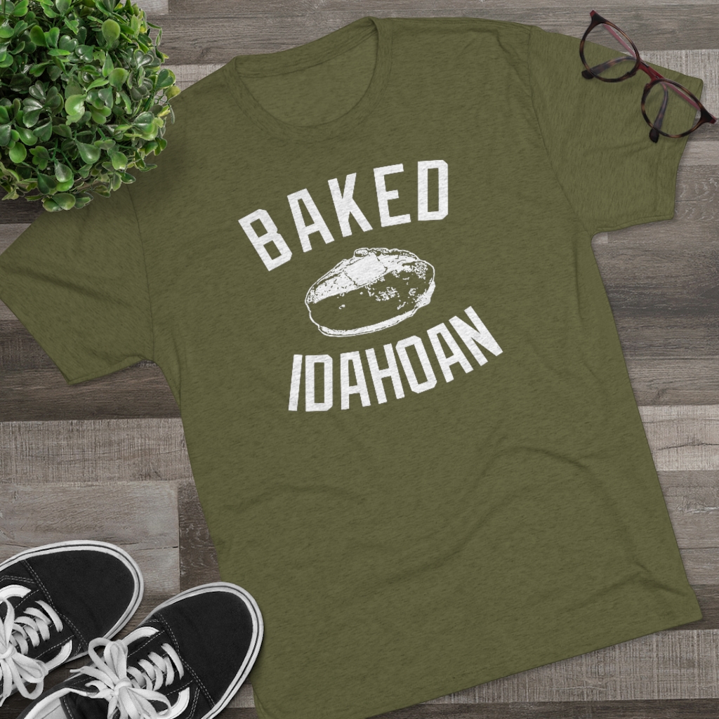 The Baked Idahoan design is printed on a crazy soft, comfortable, stretchy men’s/unisex, triblend tee that will quickly become your favorite Idaho shirt. This tshirt runs true to size but has more of a modern, “fashion” fit, so we recommend going up a size if you prefer your shirts a little baggier. For women, we recommend ordering a size smaller than you would in a women’s fit tee.